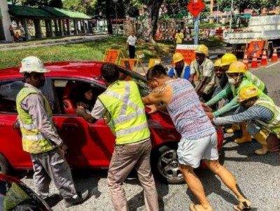 这位网友车子抛锚了在路上,但是就在不知情的情况下”一堆工人毫不犹豫地”从远处冲刺过来帮这位网友Joe车子推开,推走,这时候后面排了大概十多辆车子,但是……没有一位来帮忙而是只会按一直按喇叭……(这些开车的我可以假设你们是新加坡人吧? )