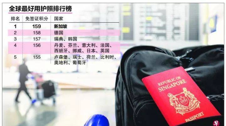 金融公司阿顿资本(Arton Capital)公布最新全球护照指数显示,新加坡护照超越德国,排名全球护照指数排行榜第一位,享受159个国家和地区免签待遇。