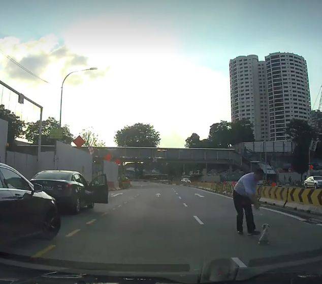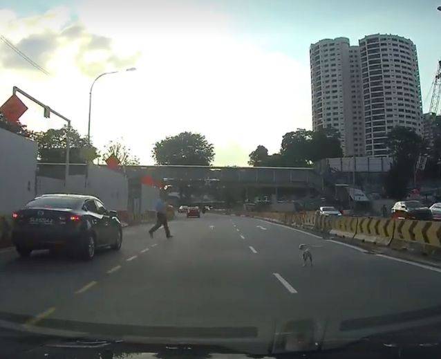 最近网络上流传了一则视频。视频中,汤申路上段(Upper Thomson Road)交通拥挤,而一只小狗在马路中间紧张地走着,拚命地回避著路过的车辆。