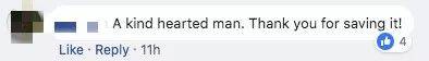 虽然男子这样做很危险,不过许多网友在视频下留言赞扬男子的行为。