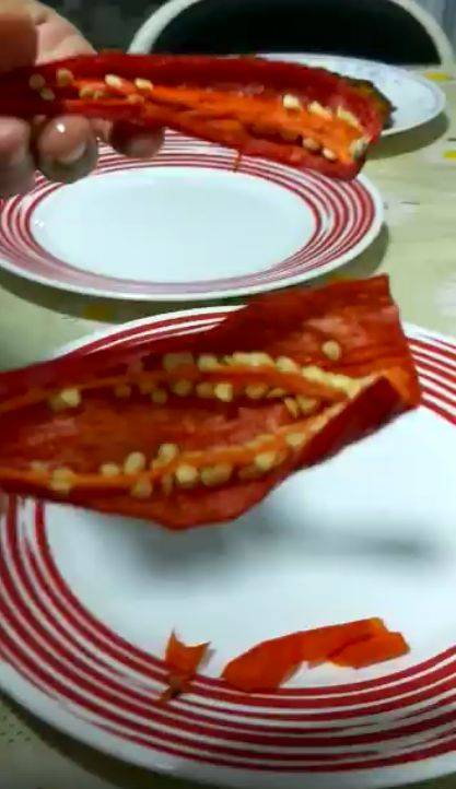 网友声称自己在捣碎辣椒时,发现辣椒皮断不了,于是怀疑辣椒是塑胶做的。