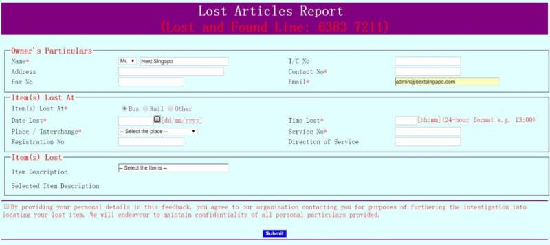 如果你是坐的是SMRT公车/地铁,最好也要在网上填一份挂失表格