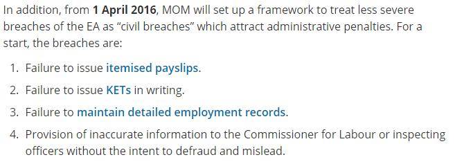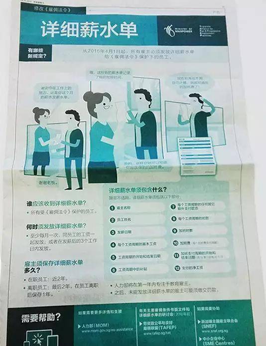 之前我们才发布了一篇”新加坡找工的重点整理”,里面就有说到现在的公司在2016年4月1日起,所有雇主须每月为员工提供详细薪水单,以及“书面主要雇佣条件”,写明工资、工作和休息时间。