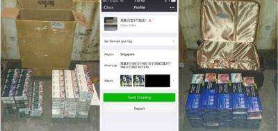 广告另外在2016年5月4日,新加坡海关逮捕了四名中国人,这四名中国人在微信朋友圈售卖走私的香烟。 26岁的ZHANG XX,在2016年4月28日在芽笼28巷刚走出住处时被海关人员抓获。海关人员在他的公寓里查获235箱走私烟。这些香烟偷逃税款20110新币。张某因卖走私烟被判监禁5个月。