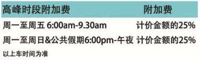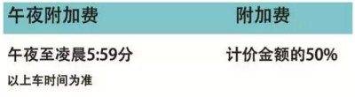 午夜附加费(在0:00~早上6:00,加收显示车资的50%)