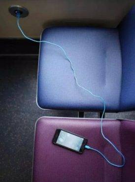 每个埠共有两个接口,可同时为两台行动配备充电,但乘客得自备充电用的接线。为鼓励乘客往车内移动,埠位置多数设在靠窗的座椅旁。车上的轮椅停放处也备有埠,方便行动不便人士使用。