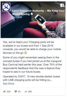 明天起,乘客能在SMRT企业经营的一些巴士上,利用内置的充电埠,为手机、平板电脑或其他行动配备充电。You can now charge your phone on SMRT buses using their USB charging ports
