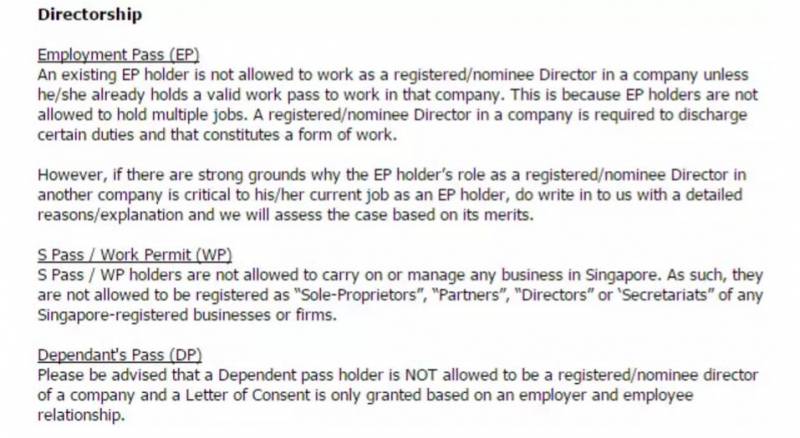 1.除非是EP准证挂钩公司,否则EP不可以做其他公司董事。 (特殊情况可以写信到MOM解释)