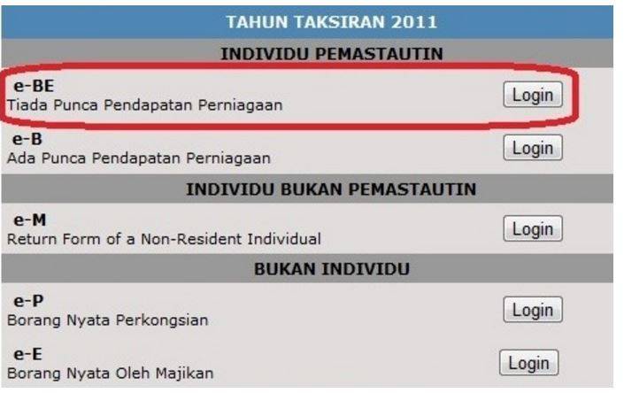 登录e-Borang (BE 表格)