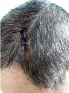“到诊所后,医生也赶紧为我止血,头部还缝了5针。”