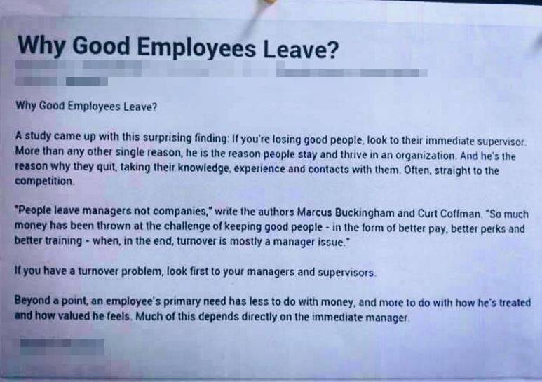 很多好员工选择离开是因为跟主管处不好,聪明的企业应该确保主管们知道如何在专业和“人情味”间取得平衡。所谓的在乎,包含为员工的成就庆祝、在员工历经艰困时期时,给予关怀。