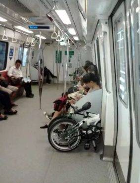 3)如果车轮肮脏或者潮湿,要遮盖以免影响到其他乘客出行(这可能是不少人要吐的槽点:立起来约有半人高的代步工具,接触地面的车轮不可能有多干净,进出总是对着人,为啥不设计成对着自己?!)