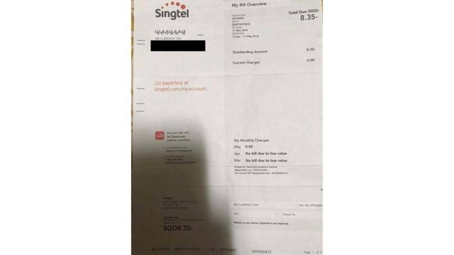 他称自己不是新电信(Singtel)的顾客,却收到公司发来的账单,怀疑自己收到造假的账单。