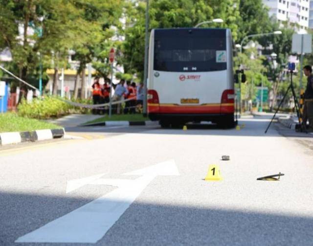 警方和救护人员当时已封锁现场,30多名公众站在一辆SMRT巴士围观。