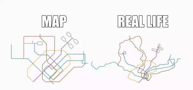 但其实,真实的地铁图肯定没有这么横平竖直,间距均匀~一名网友wrcyn就突发奇想,做了一版真实vs图示地铁图!