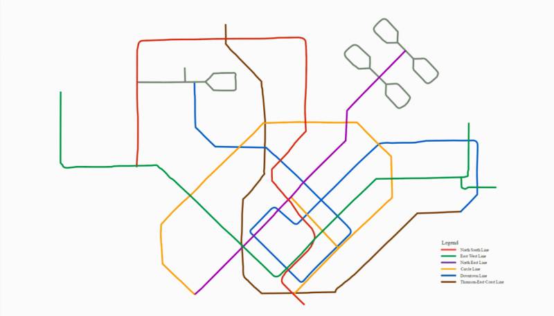不过,你看的MRT线路图那么“短”也是有理由的:如果画成右边这样,还有几个人能读得清楚哇!