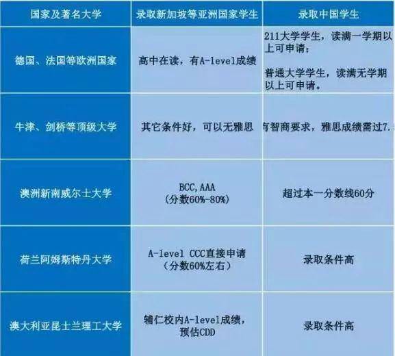 在报考政策方面,许多国家的著名大学在新加坡的招生标准要远远低于在中国的招生标准。比如牛津、剑桥这样的顶尖大学,对新加坡的招生标准是“其他条件好,可以无雅思”,而录取中国学生的标准则是“有智商要求,雅思成绩需过7.5”。为什么会有这样的差距?