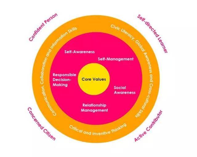 新加坡教育致力于培养孩子情绪管理技能,建立良好的人际关系,这不仅有利于学生在学校的学习,更重要的是对学生以后在社会的发展打下了基础,让学生形成自我管理、自我意识、社会意识,学会关系管理,做出负责任的决策,最终形成互相尊重、自强不息的价值观。