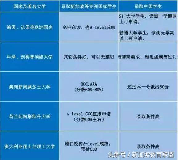 广告在报考政策方面,许多国家的著名大学在新加坡的招生标准要远远低于在中国的招生标准。比如牛津、剑桥这样的顶尖大学,对新加坡的招生标准是“其他条件好,可以无雅思”,而录取中国学生的标准则是“有智商要求,雅思成绩需过7.5”。为什么会有如此大的差距?