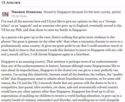 一个类似于知乎的英文网站Quora上有一个热门问题:“大家为什么讨厌新加坡?”