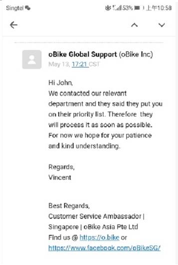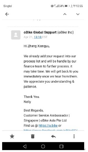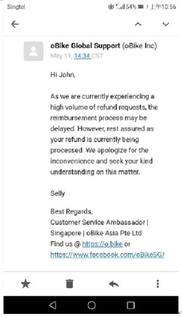 新加坡网友来信:共享单车Obike拖欠49新币押金,至今还没还!