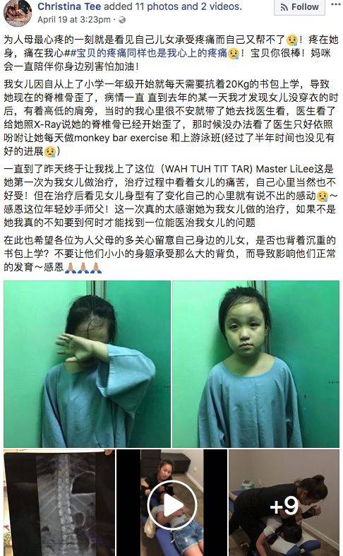 脸书上一位网民Christina Tee于4月19日发文告阐述女儿的经历。