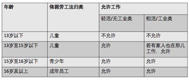 由此可见,13岁以下的儿童在法律上是不允许工作的,而16岁及以上的青少年可被雇用为成年员工。
