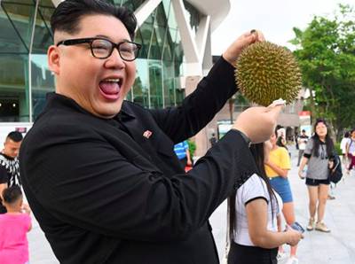 艺名为“霍华德X”(Howard X)的演员,周日穿着中山装在滨海湾一带拍照,还捧著新加坡美食鸡饭和榴梿摆出各种姿势。假金正恩的出现吸引了众人的好奇目光,纷纷上前要求合照。