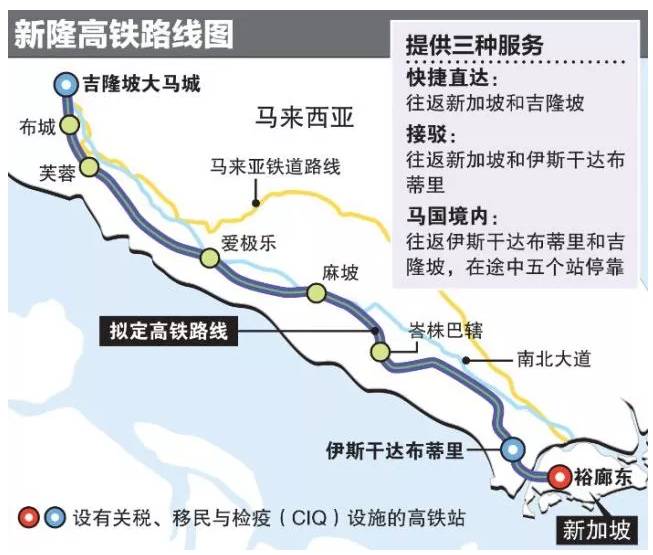 可以大大减少出行时间,更方便两国人们的通行,这项合作的项目名称叫做! “新隆高铁”或者“隆新高铁”!又名“双坡高铁”,指的是从新加坡到吉隆坡,新隆高铁全程约350公里共设8个站,新加坡终点站设在裕廊东,而吉隆坡终点站设在大马城。
