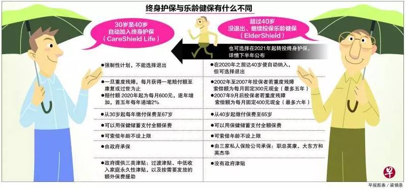 从2020年起,年满30岁的新加坡公民和永久居民将强制加入终身护保的全国重度残障保险计划,保户一旦因中风或患失智症等无法自理,每月可获得一笔现金来应付中长期护理费,直到康复或过世为止。