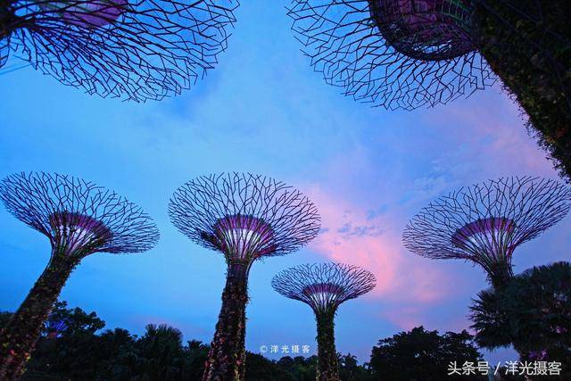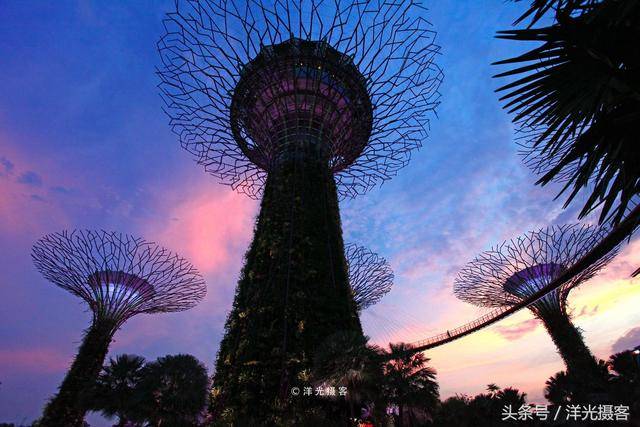高耸的“超级树”树身上种满各种热带开花攀缘植物、附生植物和蕨类植物,每棵树就是一个垂直花园,白天可以为树下的人遮阳挡雨,晚上在灯光的映衬下,则给游客呈现出另一个梦幻世界。