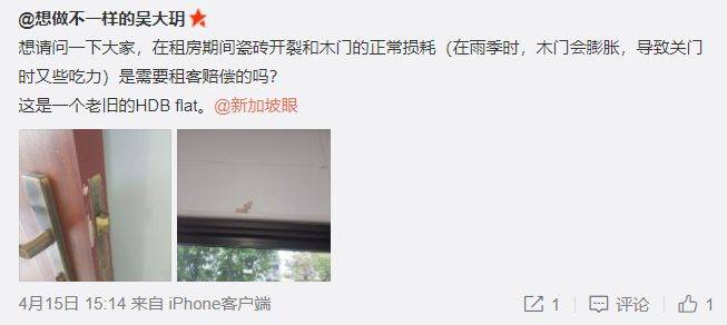 房东一家人收房时候满屋子找裂痕,最后找了个他们自己以前补门没补好的一个疤要我500新币。我丢出来合同说让他找人修,最多每样东西按合同给250,他气急败坏不和我谈要中介来谈,最后个人退一步我给了200,中介说剩下300他垫。不过看完这里的评论我怀疑是不是两百他们对半分了