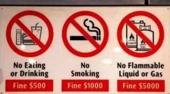如果你在公众场合看到禁止类的标示,最好遵守标示上的要求,一旦被发现,将会面临高额罚款。