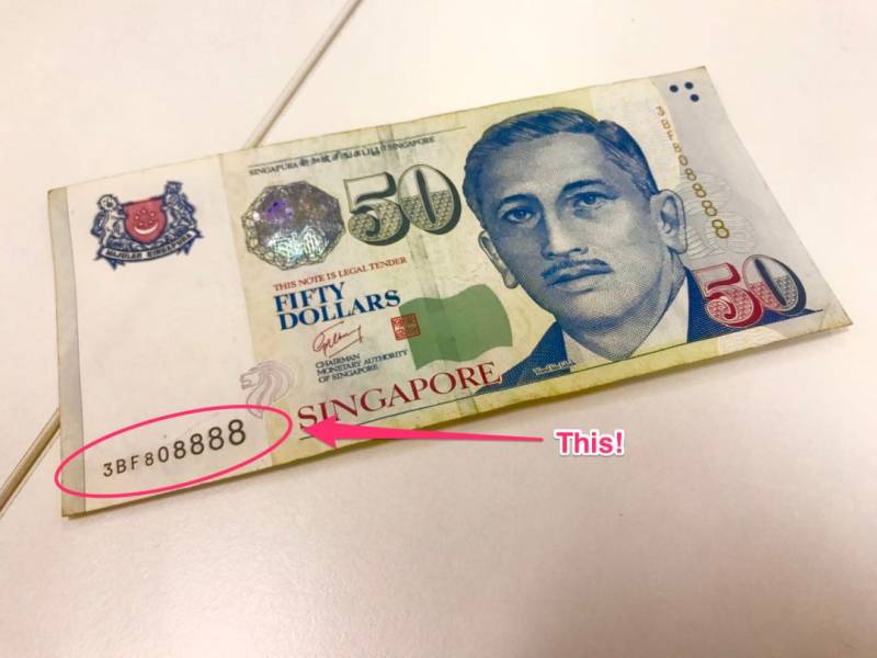 现在我们已经知道了新加坡钞票上隐藏的吉祥图案了。但如果再加上这样的序列号呢?