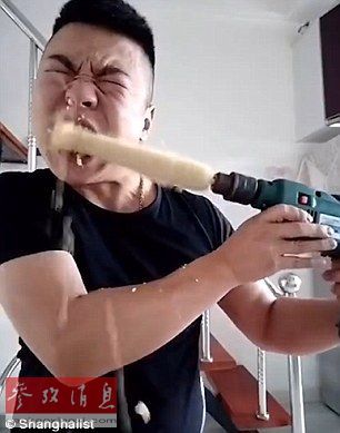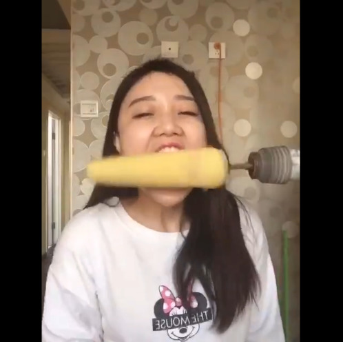 然而,同样的玉米,同样的电钻,换女人就杯具了。。。近日,“电钻吃玉米”火了,一位长发妹子跟风玩“电钻吃玉米”,但瞬间就悲剧了。玉米在电钻的加持下和头发搅在一起,瞬间将这部分头发扯了下来,让这位美女的发型成了“地中海”。咋样?杯具了吧?吃货是不是谁都能做好滴!