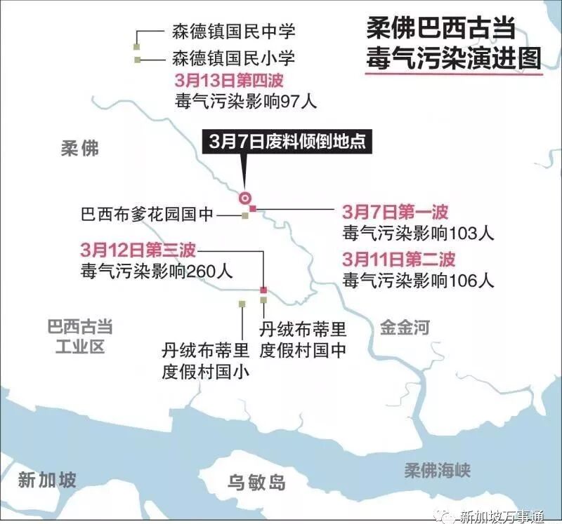 包括taman rinting 的学校, 距巴西古当工业区大约20公里。榜莪在工业区对岸距2.5公里。据榜莪的同学说他们对各种味道已经习惯了。