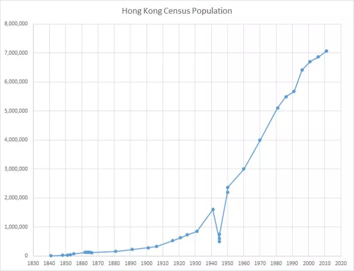 我们可以看到,香港自开港以来,人口从0开始始终持续增长,建国以来增长速度维持恒定,基本就是20年翻一倍的速度,这个人口流入速度是很恐怖的,这和香港金融中心的地位是分不开的。但是这个不重要,重要的是,我们知道香港的人口流入是一种常态,而不是突然发生的意外,那么为什么以前的房子没人喊贵,现在的房子人人喊贵,这就有问题了。
