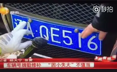 当然,除了这两辆车的处罚很有问题外,视频中出现的其他被处罚的车牌看来倒没有什么问题。比如下图中这个车牌明明是“辽A”的车却用了“辽B”的帽,而且螺丝也装错了地方。