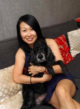 她说,爱犬是黑色的可卡犬(Cocker spaniel),开始时由一名友人饲养,但友人时常不在家,因而托付她代为看管,结果日久生情。