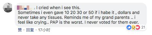 网友表示很多时候,她都会给10、20、30甚至是50新币给他们,因为这让她想起了自己的祖母。