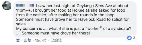 有网友则表示自己当天晚上11点的时候,在Geylang也看到这个安娣,当时看见她在商店面前徘徊,于是给她买了份食物。