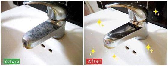 将牙膏涂在水龙头上,半小时之后再用清水洗掉,马上亮丽如新!