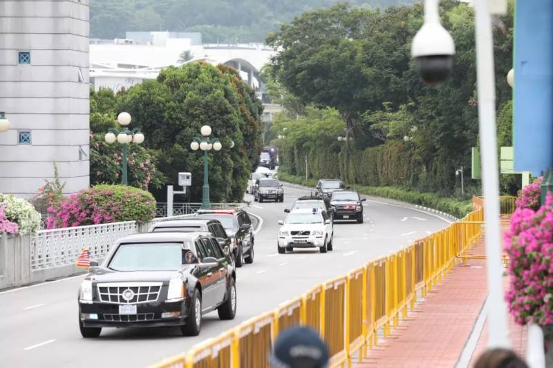 由40辆车组成的车队跨越的距离超过一个田径场的长度。 这些车辆从四面八方包围并且保护着国家首脑的车辆。这些车辆载有新加坡警察部队、美国和朝鲜共和国安全机构的保安人员,这些人员的配置主要是为了应对任何潜在威胁。