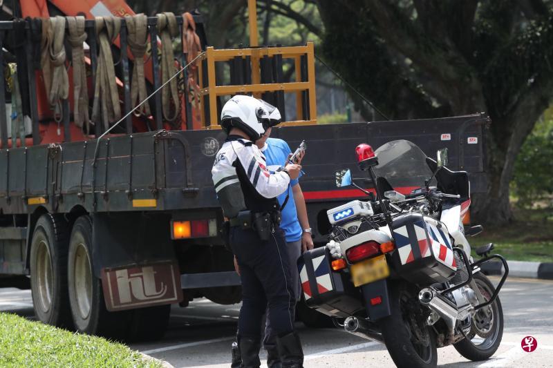 交警今早针对违规重型车司机展开例行行动,两小时内对60名违例的重型车辆司机开出60罚单。