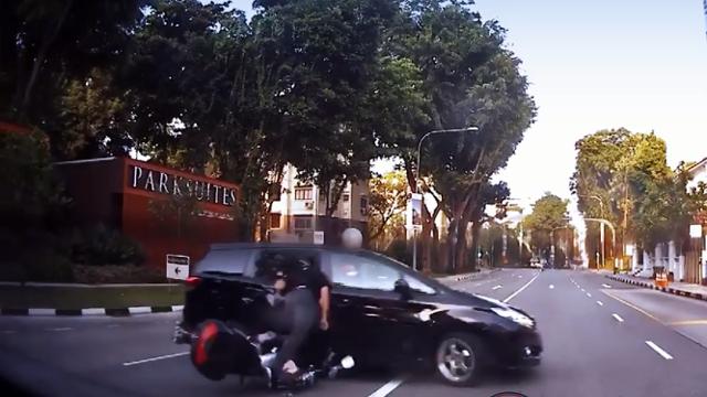 Facebook群组SG Road Vigilante上载的一段视频显示,事件发生在里峇峇利路(River Valley Road)朝往禧街(Hill Street)方向,涉及一辆黑色的丰田休旅车和一辆摩托车。
