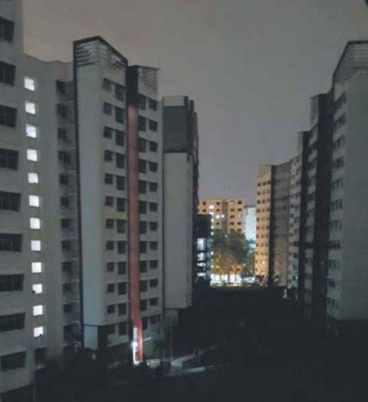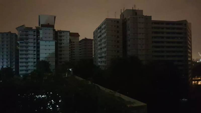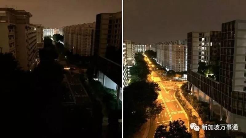 新加坡的组屋区没有灯光,漆黑一片的样子,与平常的灯火通明“判若两岛”了!