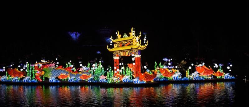 “鱼跃龙门”是滨海湾花园历来最大型的灯笼,长达70米和高达10.8米
