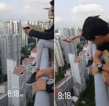 (新加坡25日讯)社交媒体上的一个视频显示,一群青少年危坐在女皇镇杜生庄47楼天台花园的栏杆,还从高空倒可乐到楼下。有居民申诉,他们甚至从高楼丢下塑料汽水瓶,差点打中居民,也有汽车被高空垃圾击中。