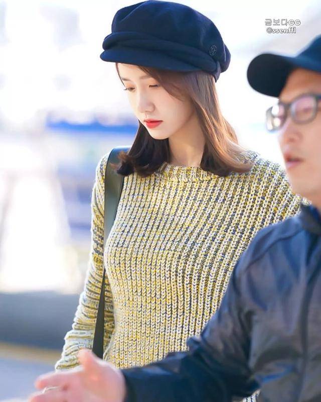 本月28日林允儿将在新加坡举行粉丝见面会,今日从仁川机场飞新加坡,毛衣配皮裙,搭配一顶贝雷帽,时尚又能赶走初秋凉意。