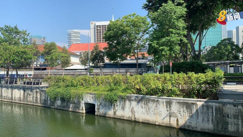 据目击者说,酒醉男子企图从水泥墙跳向绿色围栏时,不慎跌入沟渠。(照片:李怡桦)
